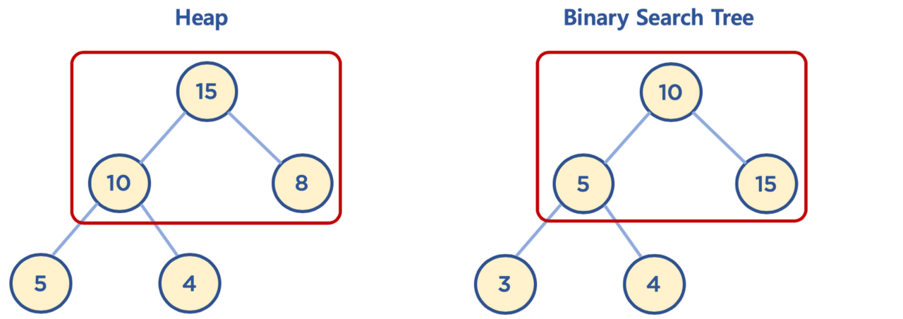 - 힙은 최대/최솟값에 초점을 맞추어 이를 빠르게 구하기 위한 구조
